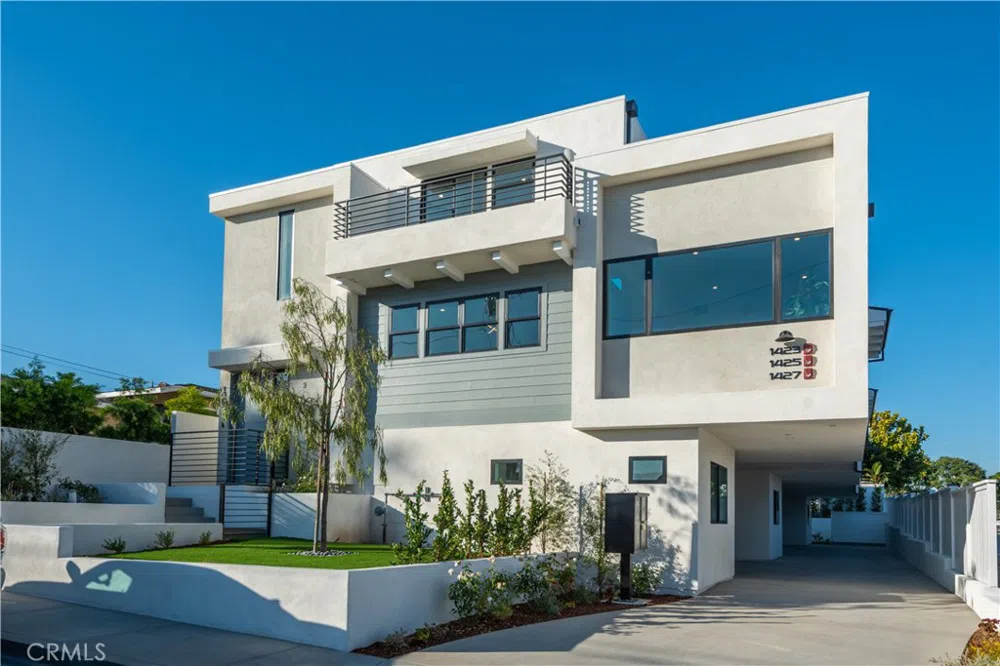 Price Improvement to $2,150,000. Welcome to 1423 15th Street (Now Staged), the front unit of three beautifully designed and built new townhomes by Cleland Construction. This unit features 2,122 square feet of living space with an additional balcony and a 178 square feet deck off the loft area. 2 car garage with guest parking and a storage room, lower bedroom and bath, laundry room plus hall closet/storage space complete the bottom floor. From the mid-level entry, you step up into the great room. Large open kitchen with stainless Bertazzoni appliances, breakfast bar with seating for 4, a dining area, and a stylish family area with a fireplace. Tons of natural light and the feeling of the space is special. The 2nd bedroom - tastefully appointed full bath, and the master bedroom suite with soaking tub, walk-in shower and dual vanities sinks complete the middle level. From here, you travel up to the loft/office area with balcony on one side and large walk out deck area to the other. Views forever from SoFi Stadium to downtown LA to the mountains, this unit is a must see. Did I mention the builder supplied a solar system, air conditioning, pre-wired security system and surround sound, a tankless hot water heater, nest thermostat, Ring access, central vac system and an approximate 18' x 20' dedicated front yard area. Come take a second look - you will not be disappointed.