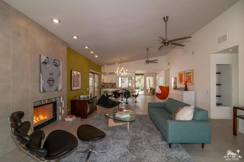 Beautifully renovated Donald Wexler Modern pool home, in gated Rancho Estates South. Updates & pride of ownership are evident from the moment you enter into this light & bright great-room floor-plan, vaulted ceilings, recessed lighting, low-E windows/doors & 24x24 porcelain tile flooring throughout. Chef's kitchen has white shaker cabinetry, glass/stone backsplash, quartz counter tops, second prep sink & upgraded appliances, open to the dining & family rooms, making this an entertainer's delight. Indoor/outdoor living & dining with large wrap around covered patio, outdoor kitchen with granite sit-down bar & low-maintenance desert landscaping. Dual master-suites with luxurious baths & a third bedroom/bath open to the private pebble lined sunny pool & spa with phenomenal mountain views. Rancho Estates South is a hidden jewel comprised of 28 detached homes sharing a community pool, tennis courts, pavilion, manicured grounds + RV Parking. This home is a ten!