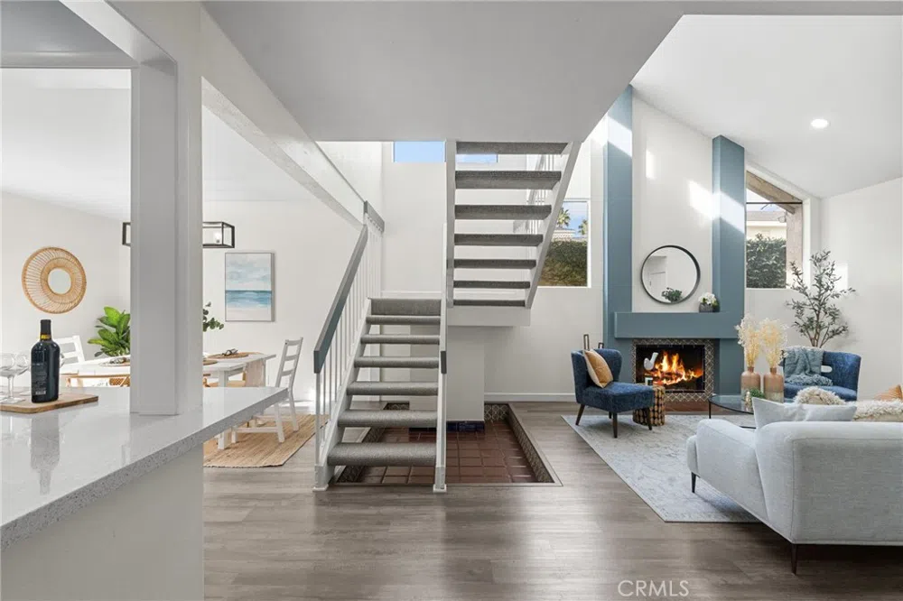This beautifully upgraded 3-bedroom **plus bonus room** townhouse offers the ideal blend of space, privacy, and modern comfort in a prime Redondo Beach location. Set as the rear unit of a 2-on-a-lot, this home is part of the coveted Jefferson School District and features only one shared wall (at the garage), ensuring a quiet and peaceful retreat. Step inside to a bright and airy open floor plan with dramatic vaulted ceilings. The sleek kitchen, featuring stainless steel appliances, quartz countertops, and LED recessed lighting, is both functional and stylish. A centerpiece of the space, the kitchen island connects seamlessly to the dining room, living room, and breakfast nook, creating an effortless flow perfect for casual meals or entertaining. Off the breakfast nook, a versatile bonus room offers endless possibilities as a home office, gym, or playroom. This inviting main level is anchored by a stunning staircase and a beautifully tiled gas fireplace, opening directly to the private patio and drought-tolerant backyard—complete with a mature avocado tree and ample space to relax or host gatherings. Upstairs, you’ll find all three bedrooms, including a well-designed primary suite with vaulted ceilings, generous closet space, and a stylish ensuite bathroom with double sinks and a large shower. Two additional bedrooms share a beautifully updated hall bathroom, also featuring double sinks for added convenience. This level includes brand new carpeting and a recently resurfaced rooftop deck, offering a perfect spot to soak up the South Bay sunshine and enjoy cool ocean breezes. Additional highlights include a wet bar off the kitchen, a powder room on the main level, convenient laundry hookups in the bonus room, and direct access from the attached garage. Located just minutes from award-winning schools, pristine beaches, parks, and everything Redondo Beach has to offer, this home is an exceptional opportunity to experience Southern California living at its best. Don’t miss your chance to call it home!