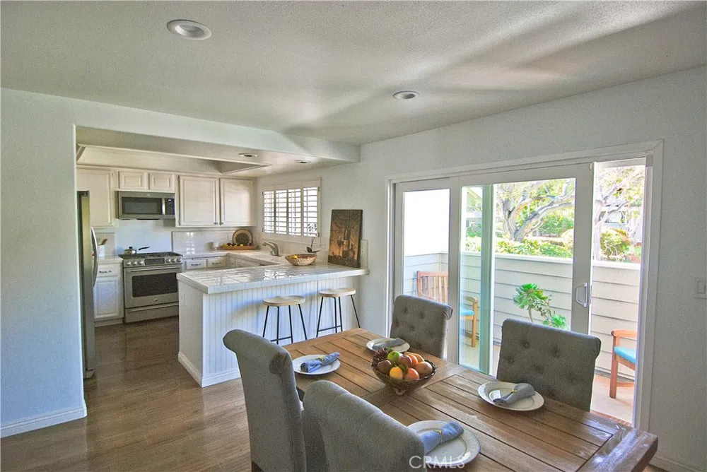 This beautiful Pl "2" townhome garden home has an extra large patio. The outdoor kitchen is perfect for entertaining. Hardwood floors throughout. - Updated walk-in shower in Primary Bath. . This Remodeled home features lots of light. Has A/C. There are upgraded newer French doors to Patio and also to Downstairs Balcony. Primary Suite also ha a private balcony. The family Room has open feelin with a passthrough to kitchen area. Kitchen has a new microwave and newer stainless steel appliances. Washer and Dryer included . Both bathrooms have updated vanities. Prime location, steps to golf course. Manhattan Village Mall is within steps to this community. Convenient to downtown area and the airport a short drive away.