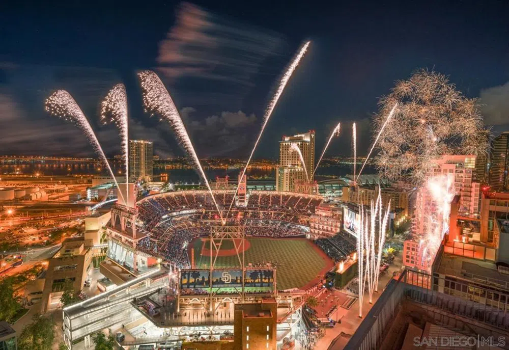 TRUE TOP FLOOR PENTHOUSE UNIT. Dual balconies off the living room and master with a view of Coronado Bridge, Balboa Park. SkyBox view into Petco Park right across the street! Unit upgraded to include hardwood flooring, granite countertops, tiled master, stainless appliances, underground parking spot, and stacked washer/dryer. ICON has it all: SkyBox (observation deck w/BBQ), lounge, fitness center, theater, 24 hr. security/concierge and proximity to SD's finest restaurants, bars and entertainment!