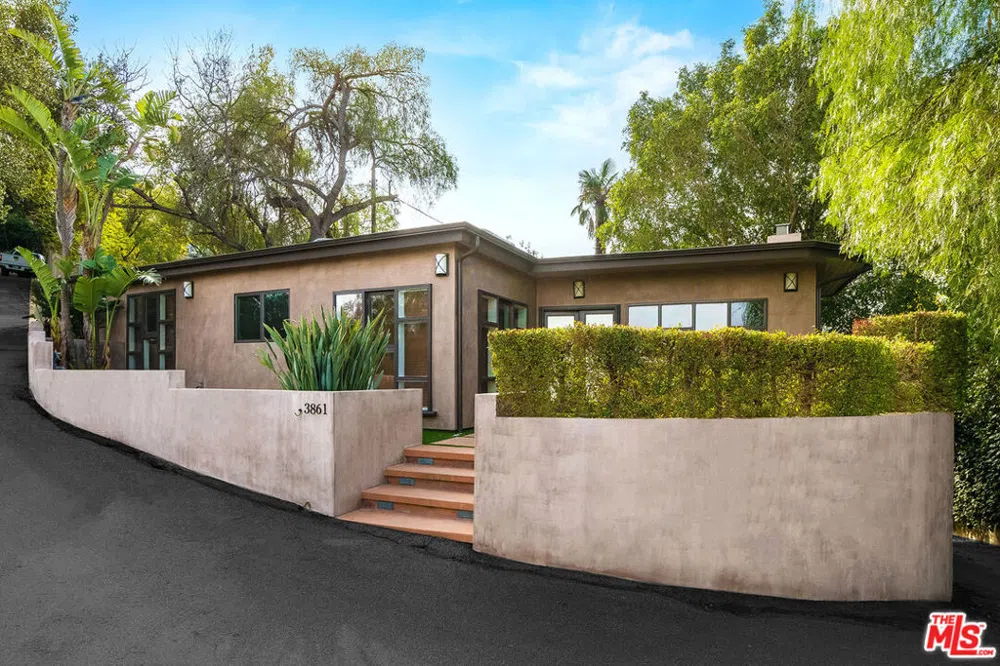 Tucked away in the Studio City hills sits this stunning architectural retreat. Situated at the end of a long private driveway, this three bedroom, two bath home boasts a separate guest house with ample privacy. Beautiful wood beams, a gas burning fireplace, an open and inviting layout and striking tree top and hills views, make this home the epitomy of relaxation. A complete chef's kitchen with JennAir appliances and ample counter space makes this the perfect place to entertain. Featuring a jacuzzi tub that overlooks the private grounds, a pond like swimming pool and a detached guesthouse equipt with a fourth bedroom and its own beautiful bathroom, this is a unique offering. With all the best of Studio City nearby including Sportsmans Lodge, Ventura Blvd, Mulholland Drive this offering is also within the coveted Dixie Canyon Elementary.