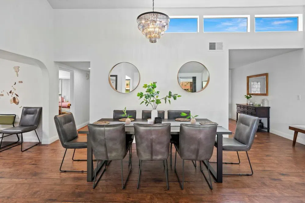 Welcome to this beautifully remodeled 3-bedroom, 2-bath condo located in the prestigious Rancho Las Palmas Country Club. This home has been thoughtfully redesigned to offer elevated comfort, custom upgrades, and effortless indoor-outdoor living. Step inside to a light and airy open-concept layout featuring wide-plank laminate flooring and abundant natural light. The original atrium has been transformed into a charming living area with a stunning arched entry--adding architectural charm and additional square footage. The open kitchen is a dream for both everyday living and entertaining, boasting custom cabinetry, sleek countertops, and seamless flow into the dining and living spaces. All bathrooms have been tastefully remodeled with high-end finishes, creating a cohesive and modern aesthetic throughout. Enjoy serene mornings and golden hour evenings on the extended patio, complete with an electric awning for shade and comfort at the touch of a button. Whether you're hosting guests or unwinding solo, the backdrop of panoramic golf course and mountain views sets the scene perfectly. Located just minutes from The River, El Paseo, and top dining and shopping destinations, this home also includes access to the community's resort-style amenities: pools, tennis courts, golf, fitness center, and more. A rare opportunity to own a fully remodeled, move-in ready home in the heart of Rancho Mirage.