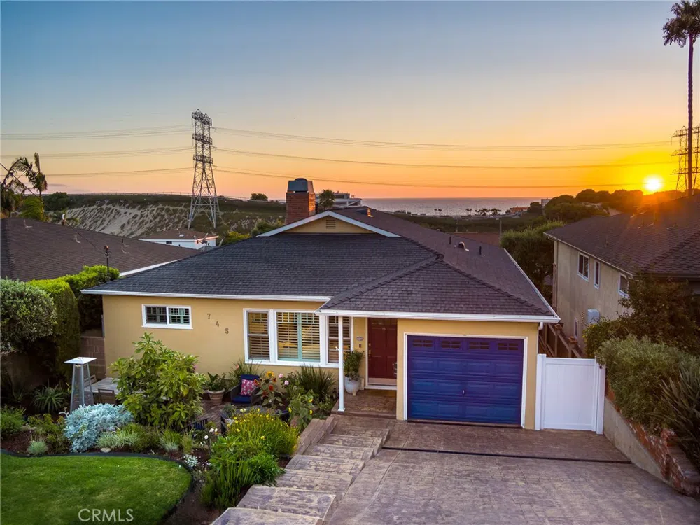 Welcome to your serene 3 bed, 2 bath retreat with an incredible ocean view on a quiet Hillcrest street in desirable El Segundo. You are welcomed by a lovely sitting area in the front of the home surrounded by a beautiful garden filled with flowers and an avocado tree. Step inside this charming home and be greeted by a welcoming open floor plan that effortlessly connects the main living spaces. The front living room, adorned with recessed lighting and a cozy gas fireplace, flows seamlessly into the dining area and kitchen. The kitchen is a chef’s delight, featuring an island with a second sink situated facing the incredible ocean view. The master suite is a private sanctuary with ocean views from a spacious closet and a luxurious bathroom featuring a jacuzzi tub and separate shower. There are 2 bedrooms plus a full bath in the front portion of the home. The original flooring adds a touch of timeless character that was matched to the newer addition of the home that was completed in 2008. Wooden shutters and double-pane windows ensure comfort and tranquility, while the central AC keeps the home cool throughout the seasons. Venture outside to discover a newly redone deck with synthetic wood and a new fence, perfect for outdoor entertaining with its built-in gas jet for grilling. The deck overlooks a lush backyard with a well-maintained lawn and additional storage space beneath. The property also includes a finished, attached one-car garage, a new AC unit, and a convenient laundry room. With ample storage and modern amenities, this home offers both comfort and convenience